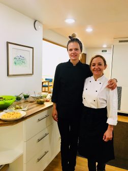 After asking some questions to Angela and the other chef, Emmi, it’s time to start eating. First there is a typical Spanish tapas, cold tomato soup with eggs. It’s in the glass and looks like smoothie. We heard that here is also bread in this tomato soup which makes it thick.