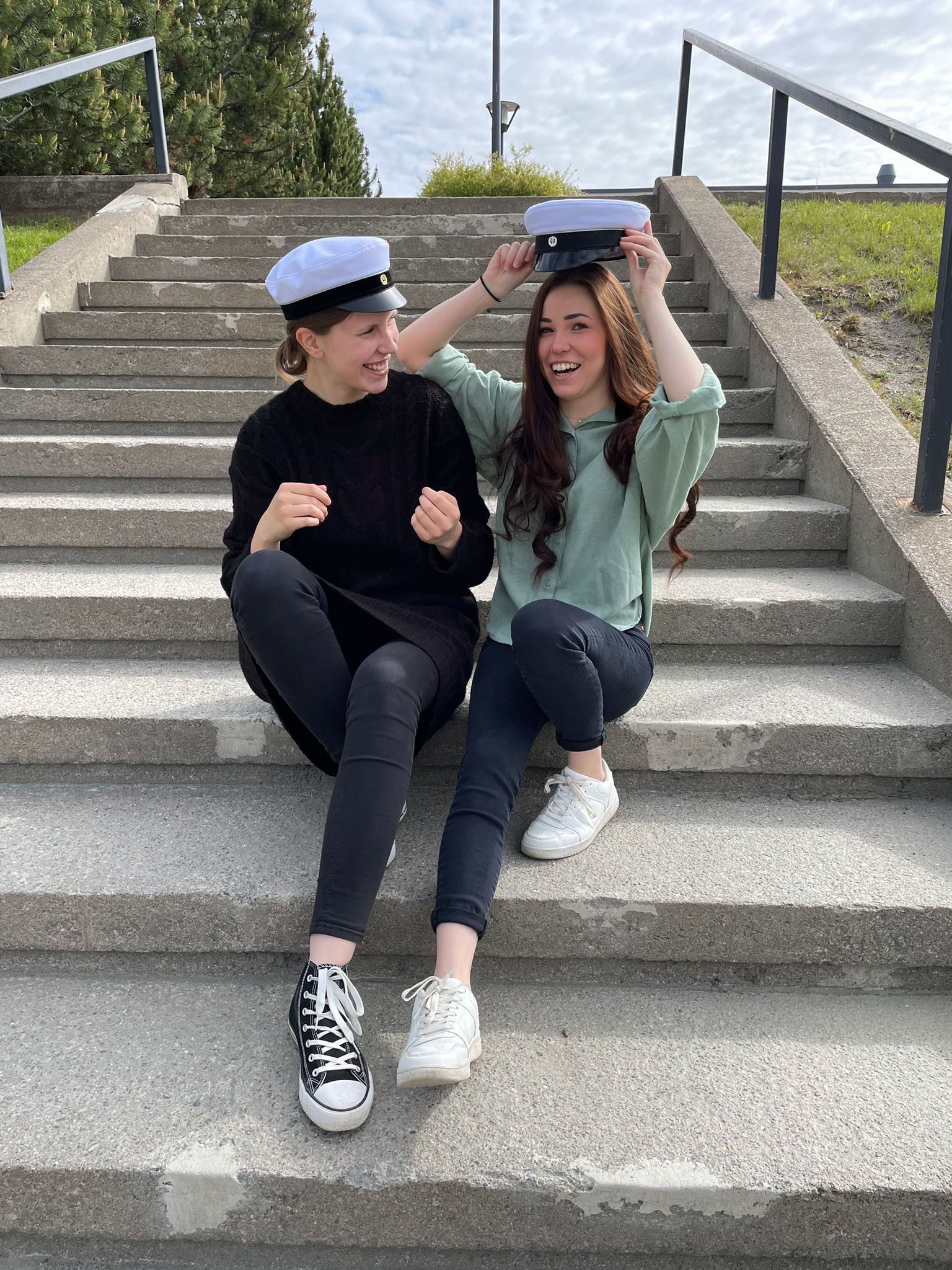 Toinen meistä valmistuu vasta ensi syksynä, joten lakki ei vielä uppoa päähän asti.