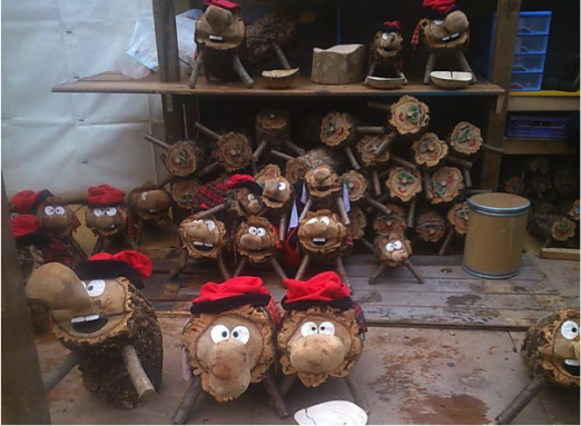 Espanjalaiset lapset uskovat, että Tío-lelut antavat heille lahjoja, jos lyövät näitä kepeillä.