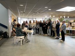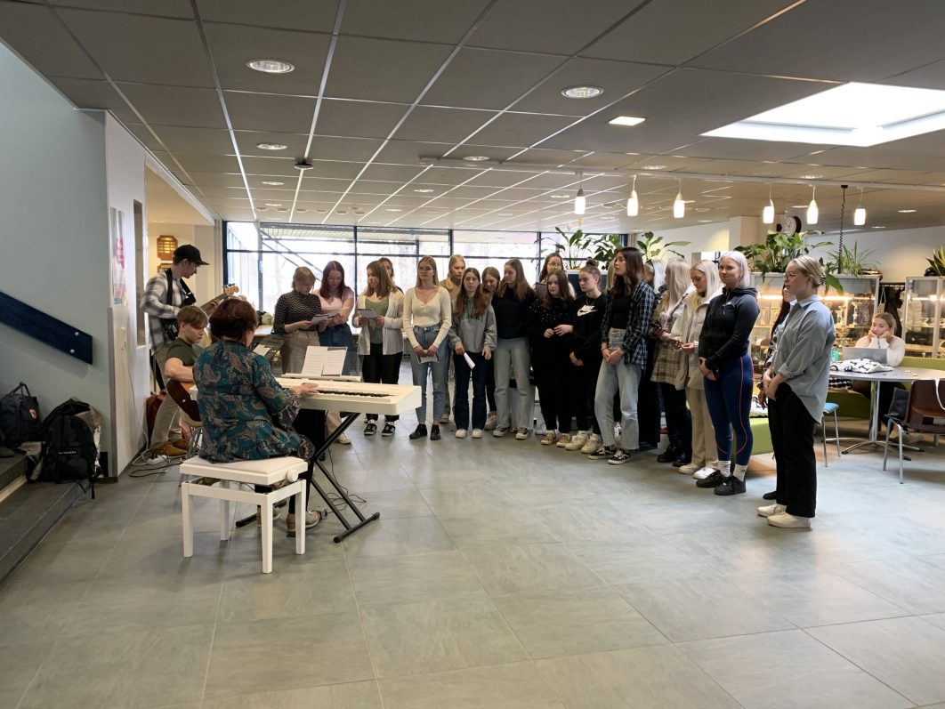 Tärkeä tunnelman luoja on koulumme kuoro, joka on avoin kaikille innokkaille laulajille ja soittajille. Tänä lukuvuonna kuoro ilahdutti kouluyhteisöä juhlaesiintymisien lisäksi järjestämällä välituntiesityksen Forum Classicumilla.