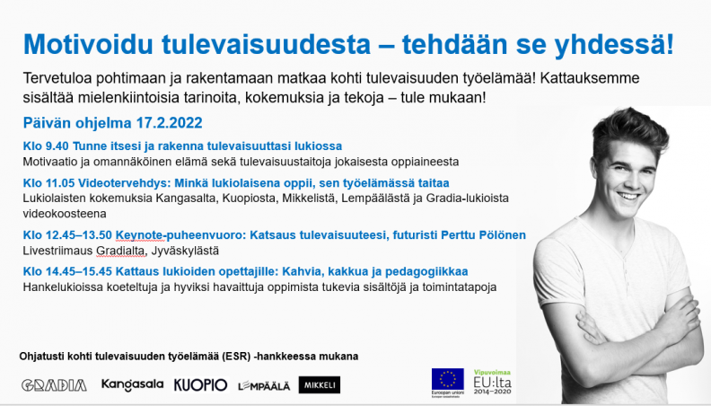 Päivä huipentui futuristi Perttu Pölösen Keynote-puheenvuoroon, joka lähetettiin Gradia-lukion tiloista yhtäaikaa kaikkiin hankkeessa mukana olleisiin lukioihin Kuopiossa, Mikkelissä, Jyväskylässä, Lempäälässä ja Kangasalla.